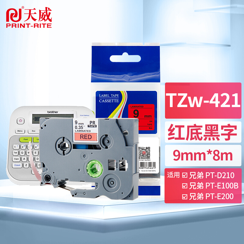 天威Tzw-421标签色带 9mm红底黑字不干胶标签纸