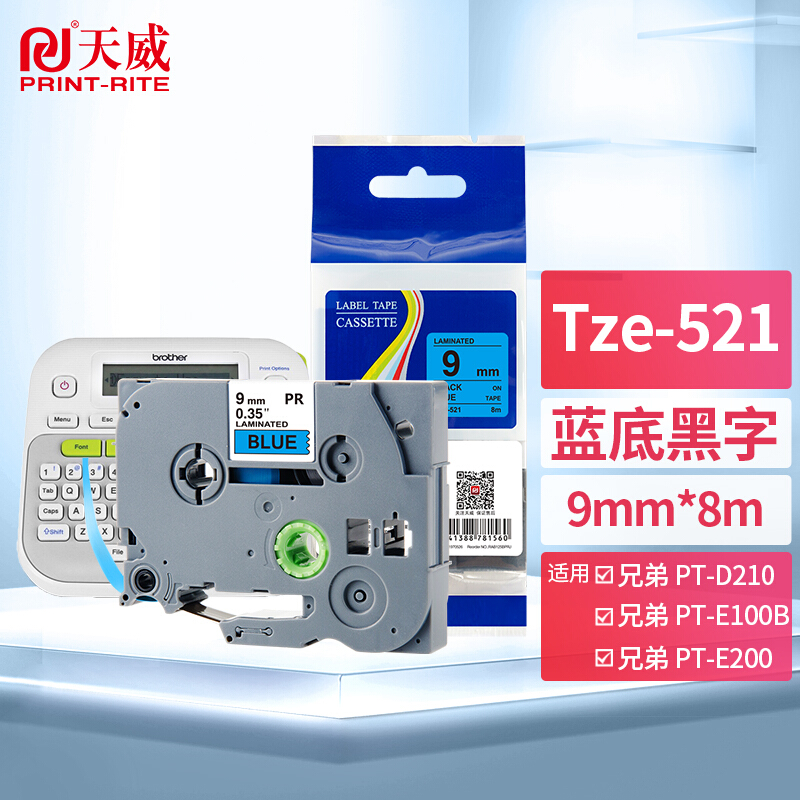 • 天威Tze-521标签色带9mm蓝底黑字不干胶标签纸