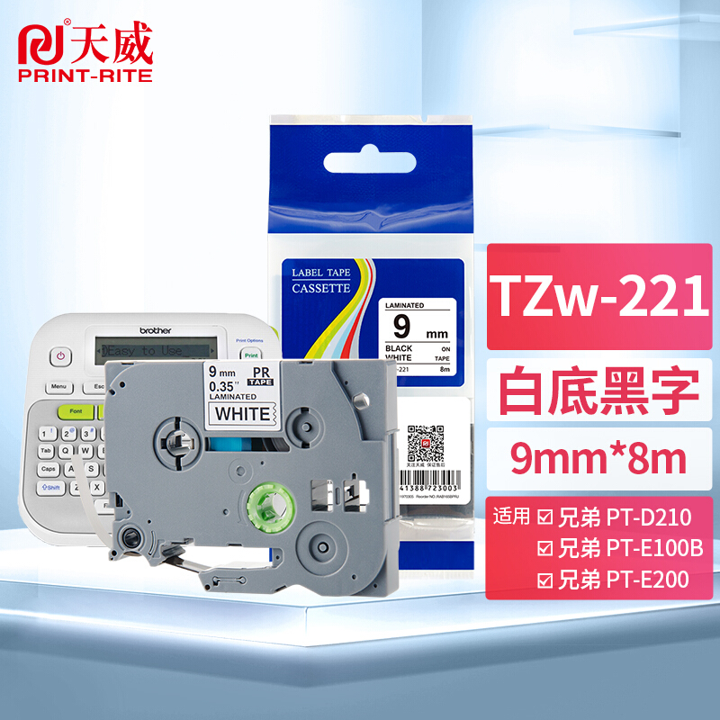 • 天威Tzw-221 标签色带 9mm白底黑字不干胶标签纸