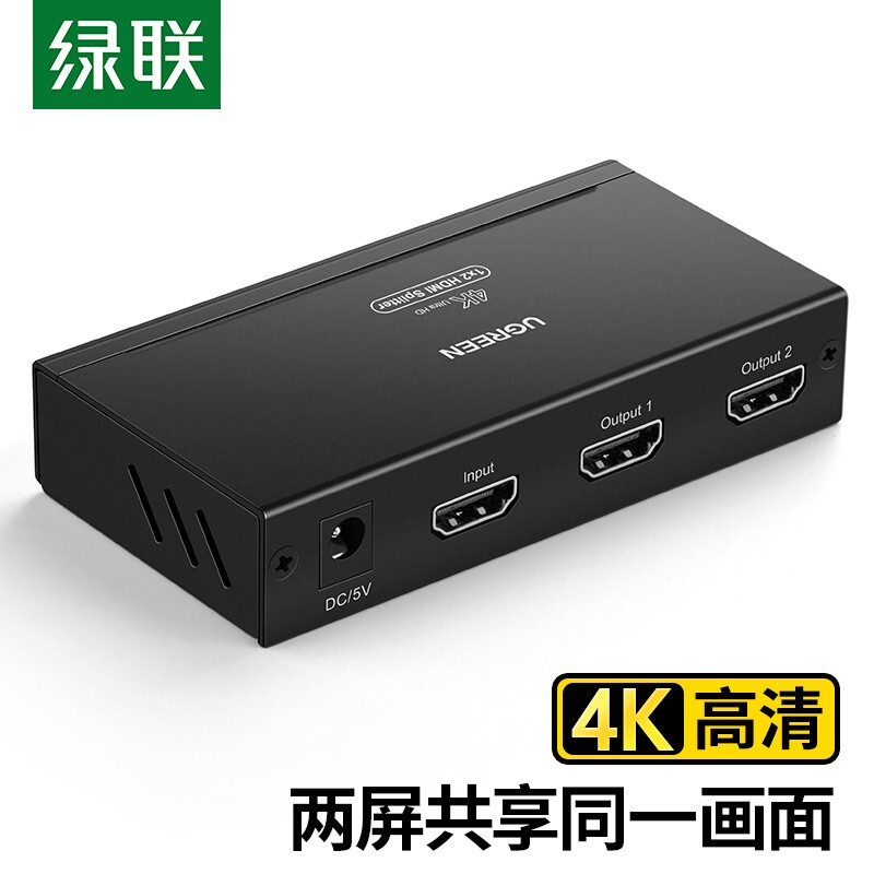 绿联 HDMI分配器一进二出 1进2出4K数字高清视频分屏器 笔记本电脑电视盒子接显示器投影仪一分二 黑色 40201