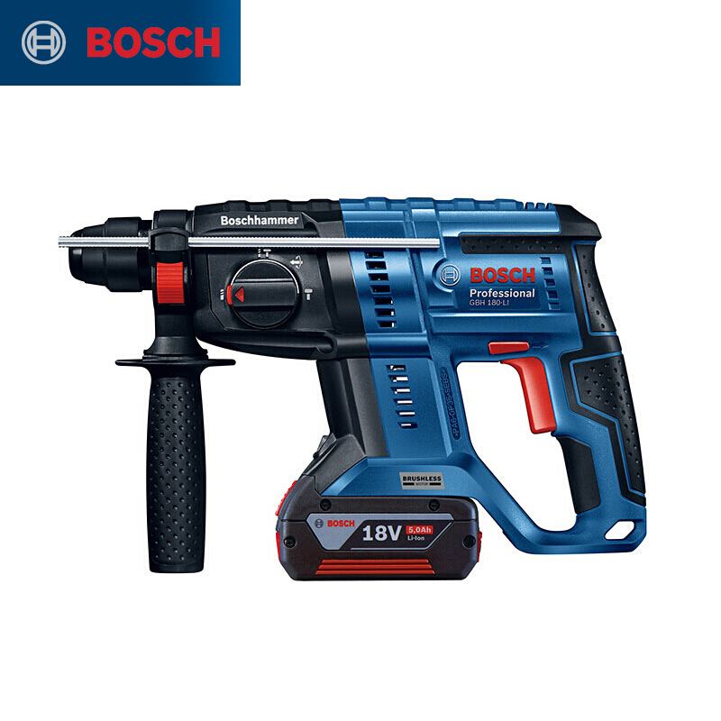 博世(BOSCH)GBH 180-Li 多功能锂电无刷充电式电锤/电钻/冲击钻(18V双电版)专业级 5.0Ah电池*2