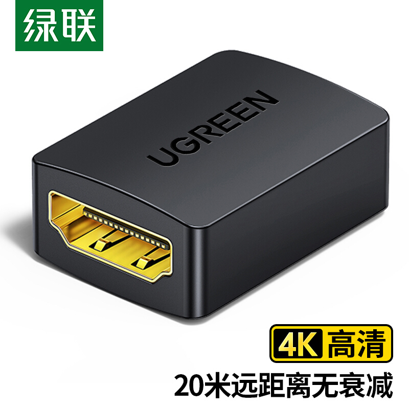 • 绿联(UGREEN)HDMI延长器转接头 母对母高清连接头2.0版 HDMI线对接头直通头串联延长线 黑色 20107