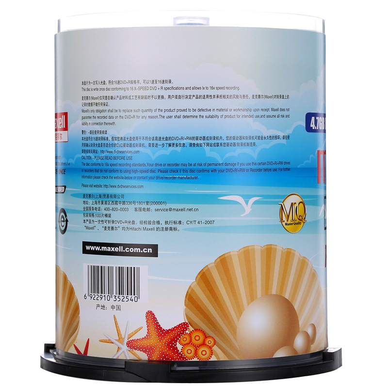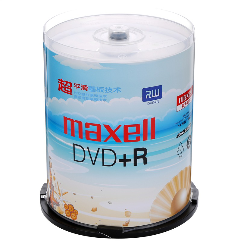 麦克赛尔(maxell)DVD+R光盘 刻录光盘 光碟 空白光盘 M2系列16速4.7G 珍珠白桶装100片