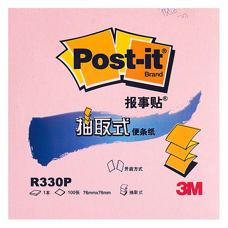 3M Post-it报事贴 R330 抽取式便条纸 可再贴便利贴 便签纸 76*76mm 粉红色 1本