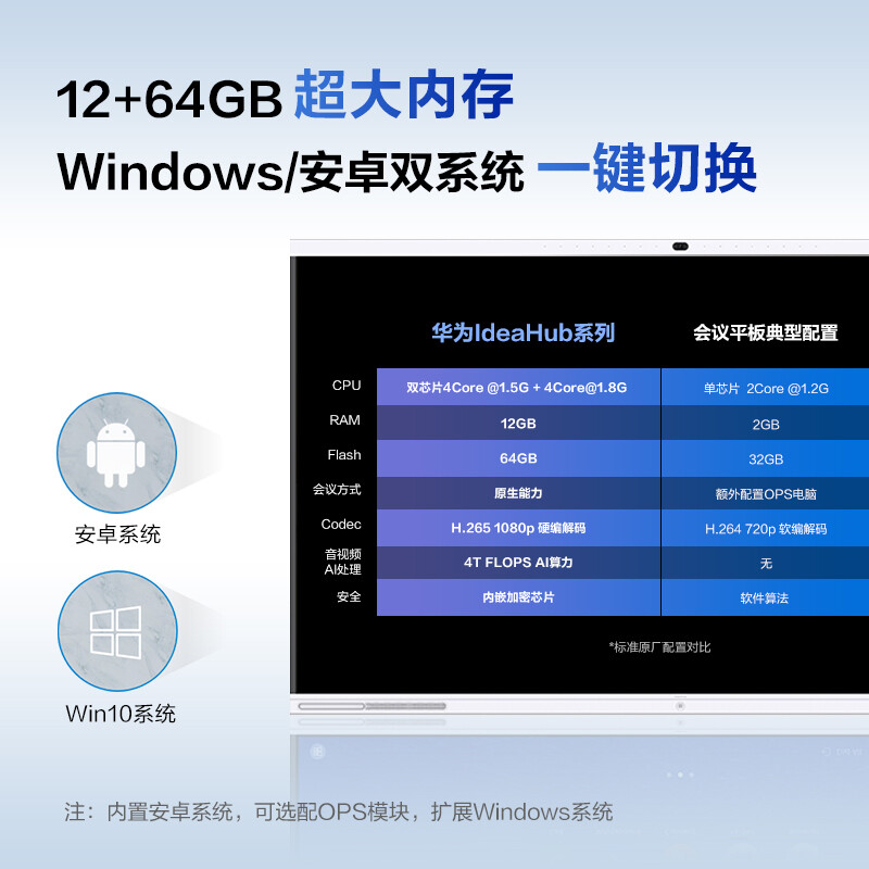 - 华为(HUAWEI) IdeaHub Pro 65英寸 智能会议平板 电视电子白板教学一体机智慧大屏