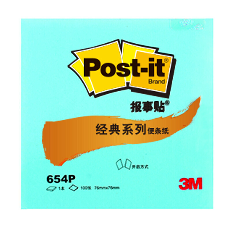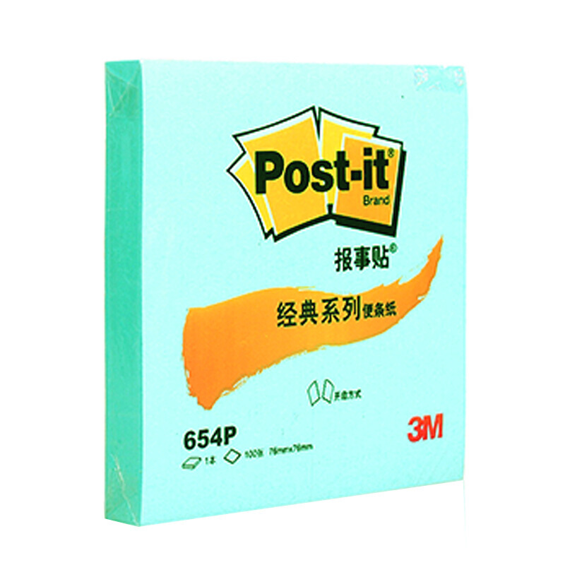 3M 报事贴 粉彩1本装 便条纸/便利贴/便签纸/便签本 经典系列654P-BG(蓝绿色)