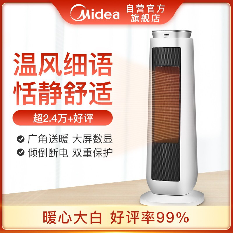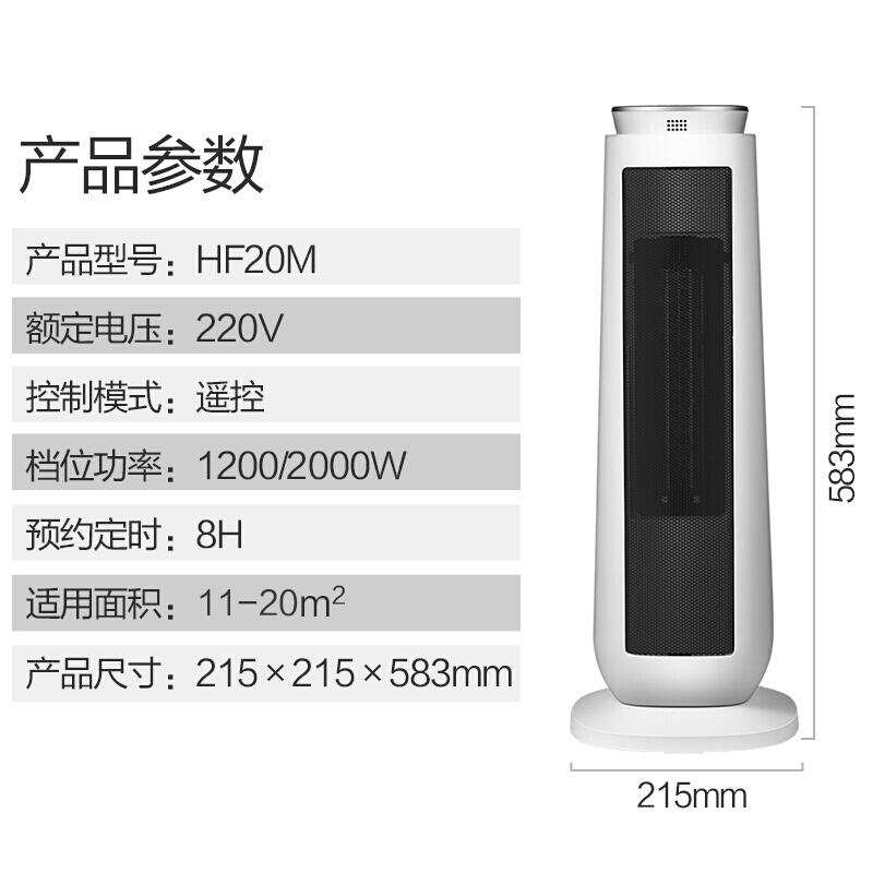 • 美的(Midea)取暖器/电暖器/电暖气家用 数码屏显 即开即热 遥控暖风机HF20M
