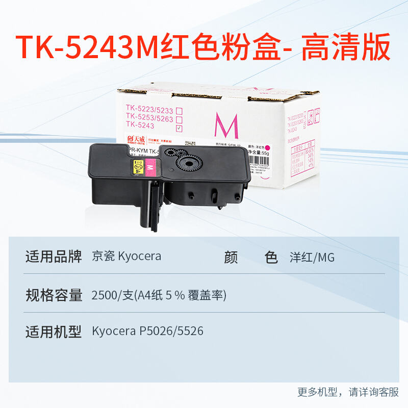 • 天威 TK-5243M红色墨粉 适用京瓷Kyocera P5026/P5526