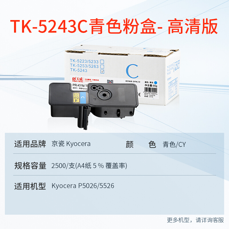 • 天威 TK-5243C青色墨粉 适用京瓷Kyocera P5026/P5526
