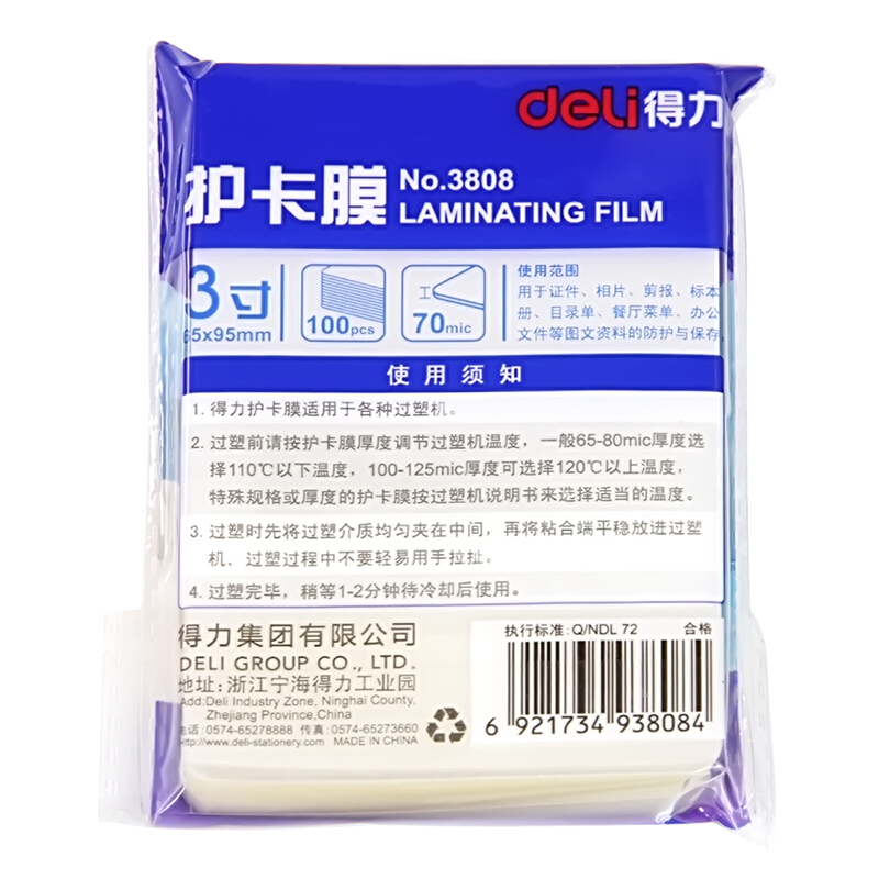 得力(deli) 塑封膜过塑膜照片菜单文件护卡膜塑封机过胶纸热塑袋 【3寸-70mic】100张/包 3808