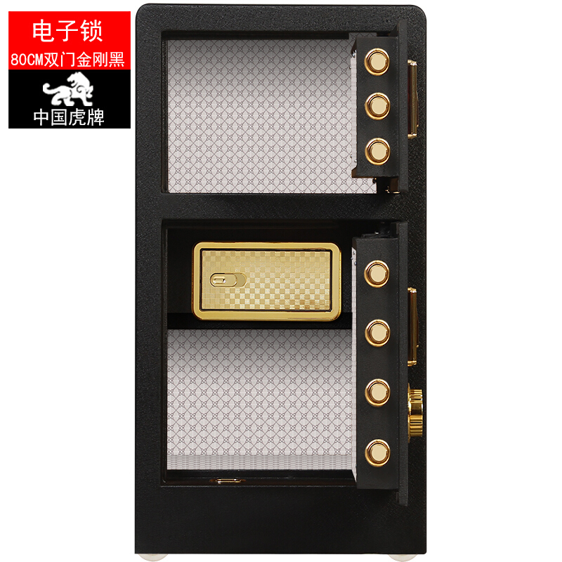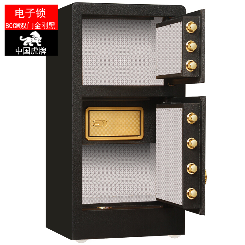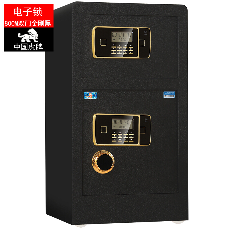虎牌 保险柜办公家用双门电子密码保险箱 全钢指纹保管柜BGX-M/D-80S 电子密码双开门80#保险柜-金刚黑