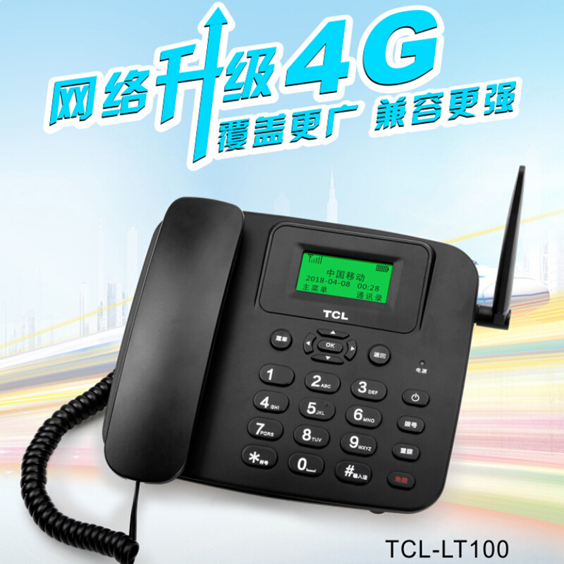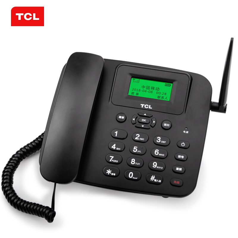• TCL 插卡电话机座机LT100 办公固定电话 支持移动联通4G卡 (黑)