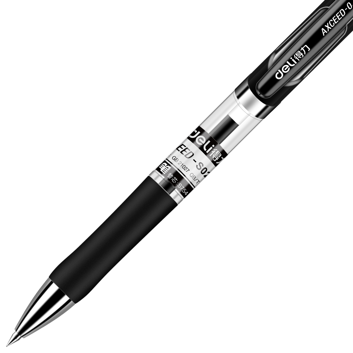 得力 按动式中性笔 S02 0.7mm 子弹头 黑色 (单位:支)