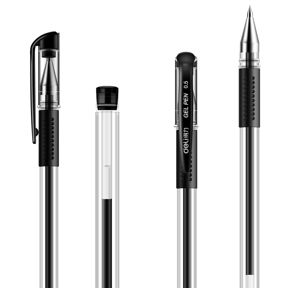 • 得力(deli)0.5mm经典办公中性笔签字笔 子弹头黑色12支/盒6600
