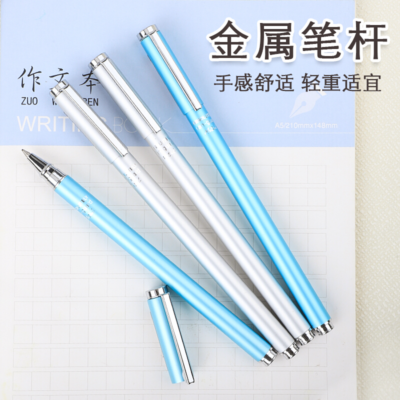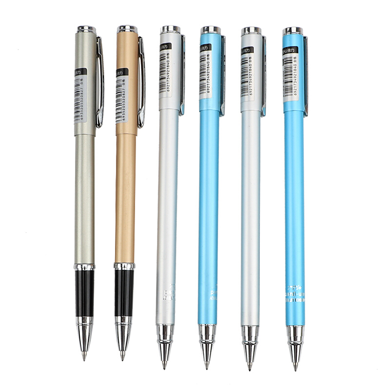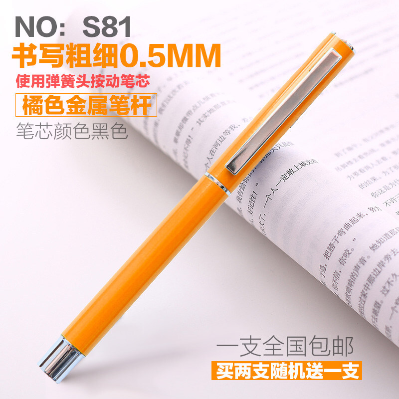 得力金属中性笔商务时尚学生办公0.5mm签字笔黑色水笔碳素笔 S81-橘色(时尚款)
