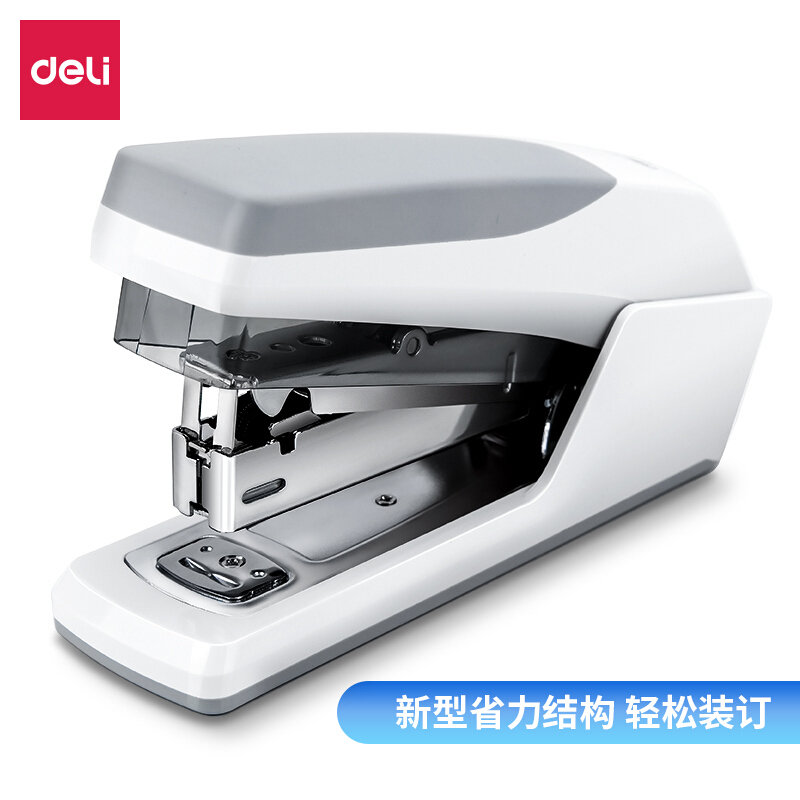 得力(deli)0368 省力型订书机/订书器 适配24/6(12#)及26/6订书钉 办公用品 白色