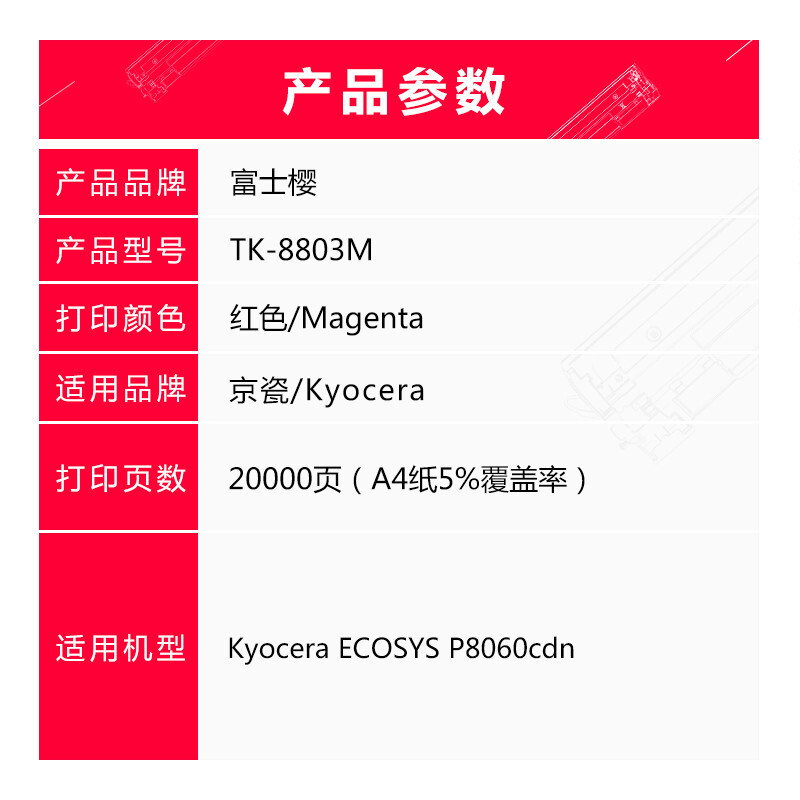 • 富士樱 TK-8803M 品红色墨粉 适用于 P8060cdn