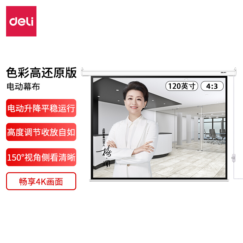得力(deli)100英寸 4:3电动调节投影幕布投影布 简易家用投影机投影仪幕布50447