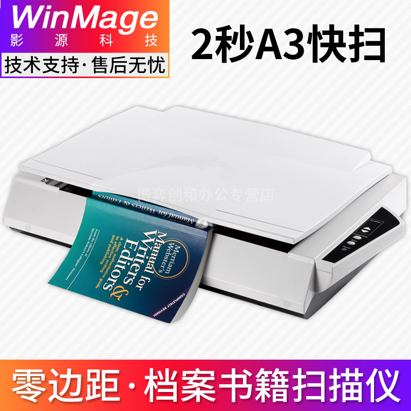 - 影源 M2580E 零边距档案数字化扫描仪A3大幅面 高清快速文档办公扫描仪