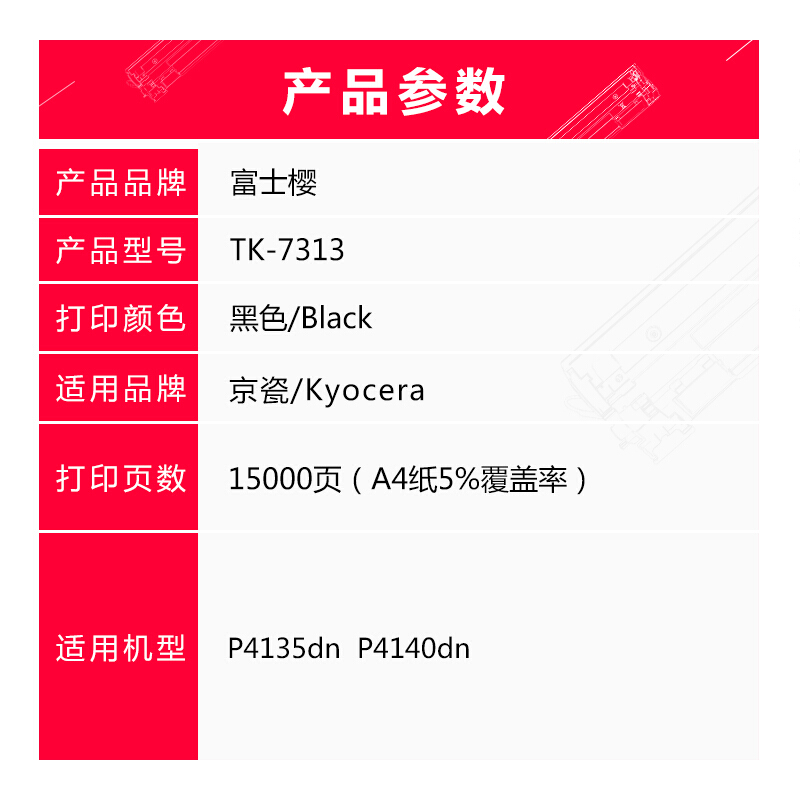 富士樱 TK-7313黑色墨粉 (适用京瓷ECOSYS P4135dn P4140dn)打印页数:15000页