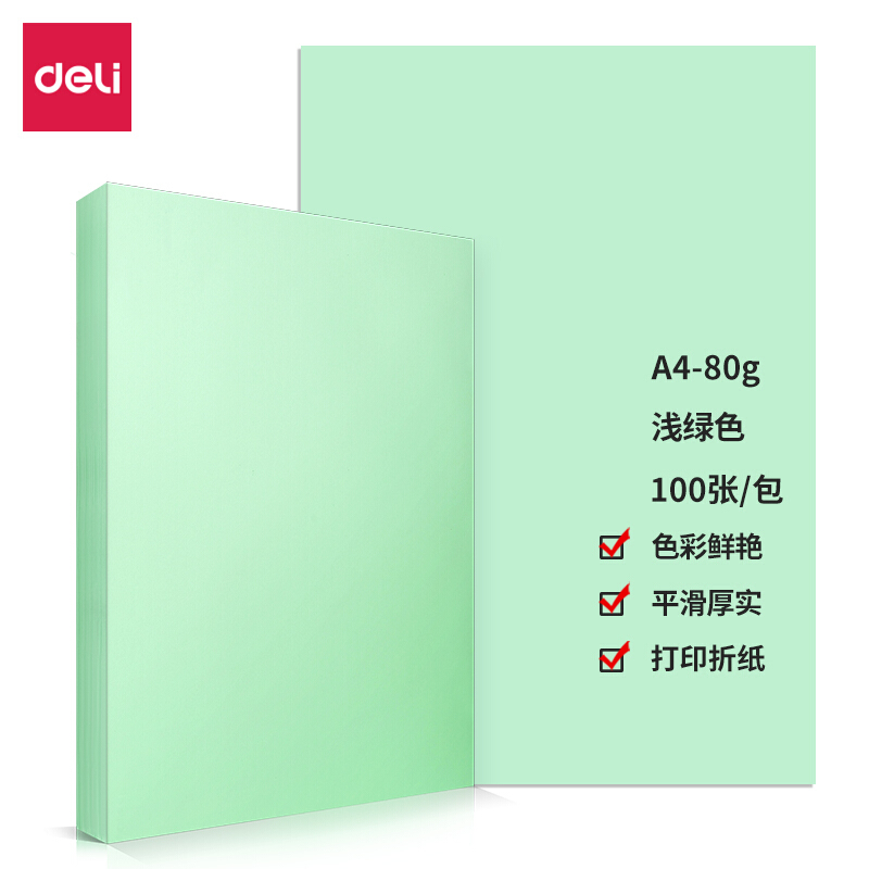 得力(deli)7757 彩色A4复印纸 80g 100张/包(浅绿色)