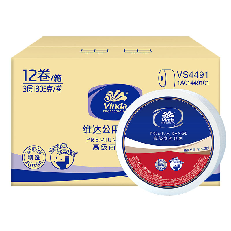 • 维达大卷纸VS4491维达三层大卷纸加厚805克 卫生纸大盘纸整箱12卷 整箱12卷