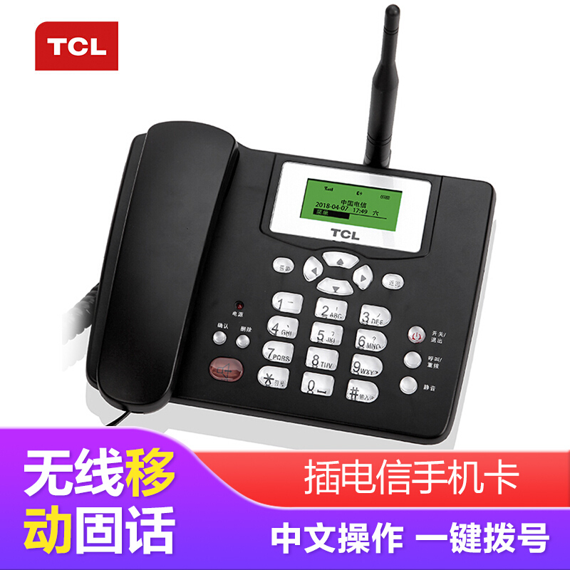 TCL 插卡电话机 移动固话 家用办公座机 电信手机卡 大音量 全中文 CF203C() 黑色