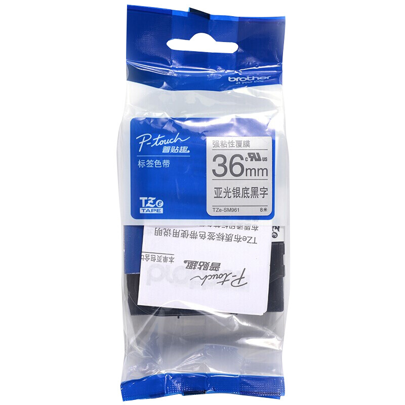 • 兄弟(brother)36mm 标签色带亚光银底/黑字 适用于PT系列标签机 TZe-SM961