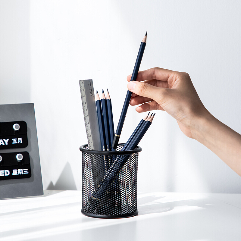 • 得力(deli)金属网纹圆形笔筒 简约创意桌面收纳盒 黑色9172