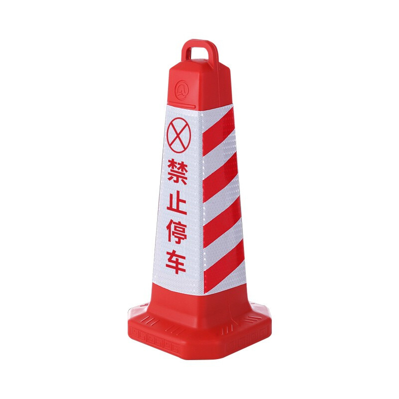 • 洪湖 反光路锥塑料方锥桶禁止停车桩专用车位警示牌 雪糕筒路障柱锥形桶交通设施 禁止停车(红色加大款)