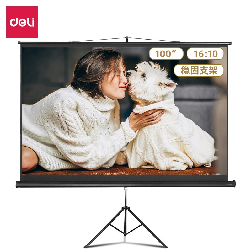 • 得力100英寸 16:10(兼容16:9)投影幕布投影布 简易家用投影机投影仪支架幕布50495
