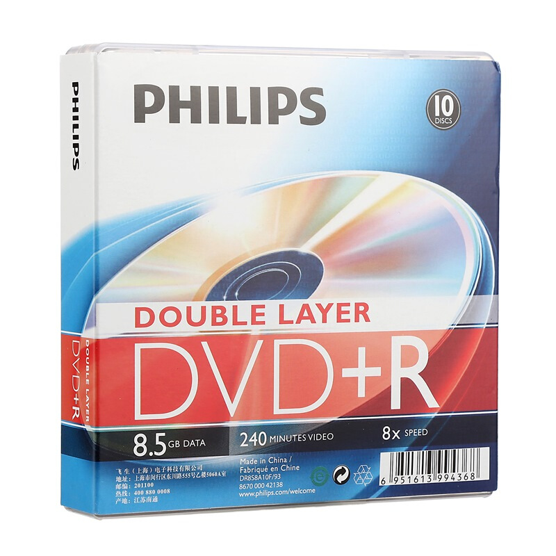 • 飞利浦 DVD+R DL空白光盘/刻录盘 8速8.5GB 单面双层 10片盒装