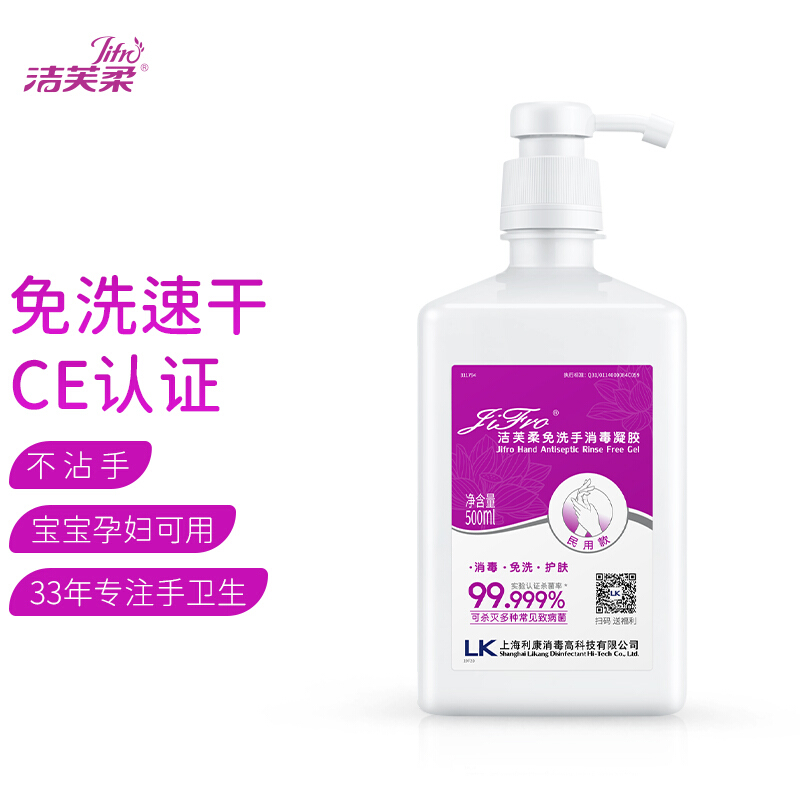 • 洁芙柔(Jifro)免洗消毒洗手液家用免洗消毒液凝胶杀菌酒精消毒洗手液 500ml