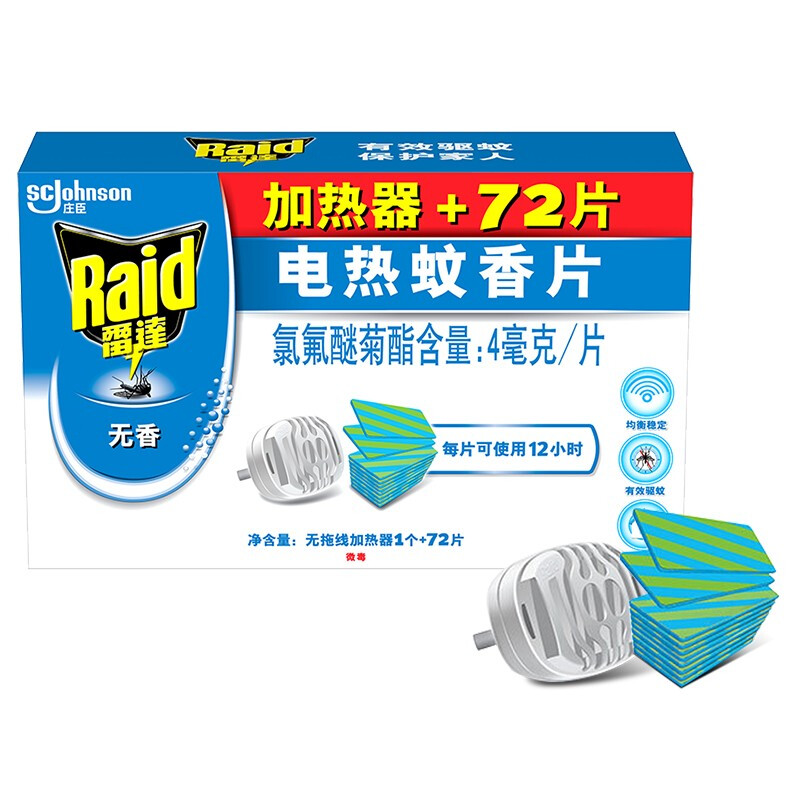 雷达(Raid) 电蚊香片 72片+无线加热器 无香型 灭蚊 防蚊虫 驱蚊器 插电