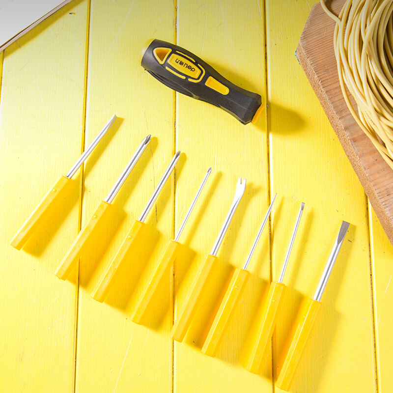 • 得力 橡胶柄两用螺丝批十字一字两用双头螺丝刀 铬钒钢螺丝刀改锥起子套装 9件套多用螺丝批 DL636009