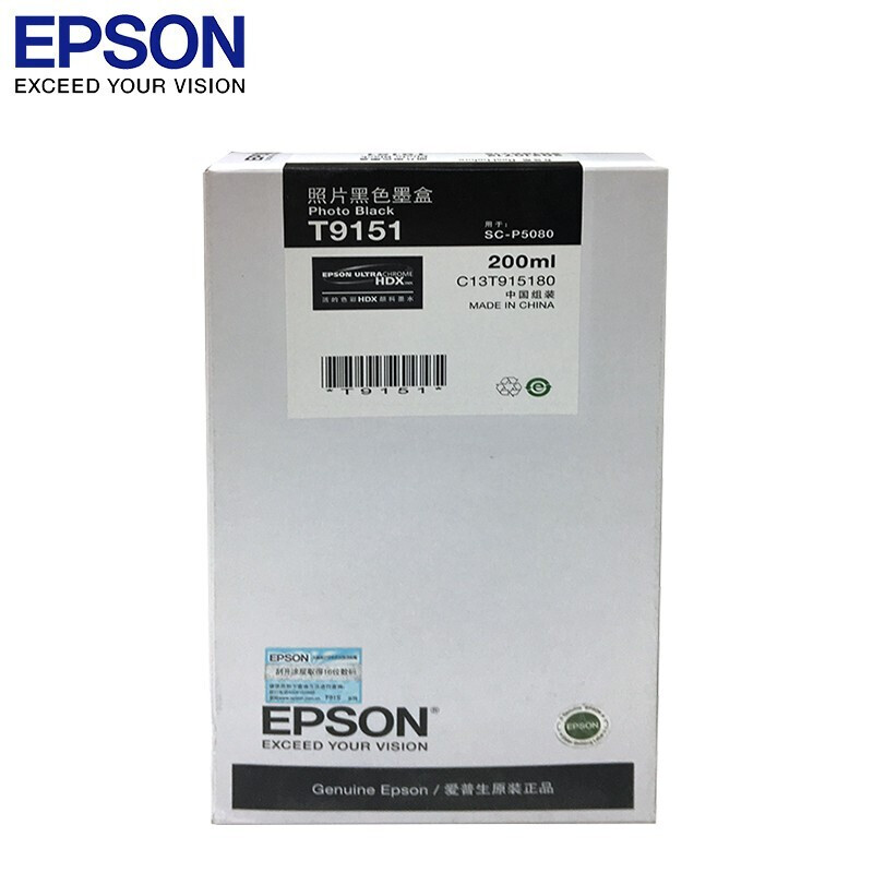 爱普生(EPSON)T9151黑色原装墨水 适用于爱普生打印机(P5080机器) C13T915280 200m