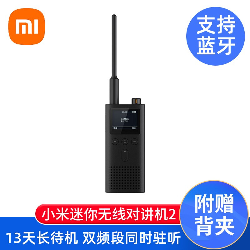 • 小米 (MI) 对讲机2 迷你无线对讲机收音机 支持蓝牙耳机长待机 户外酒店自驾游民用手台 二代黑色(新品)