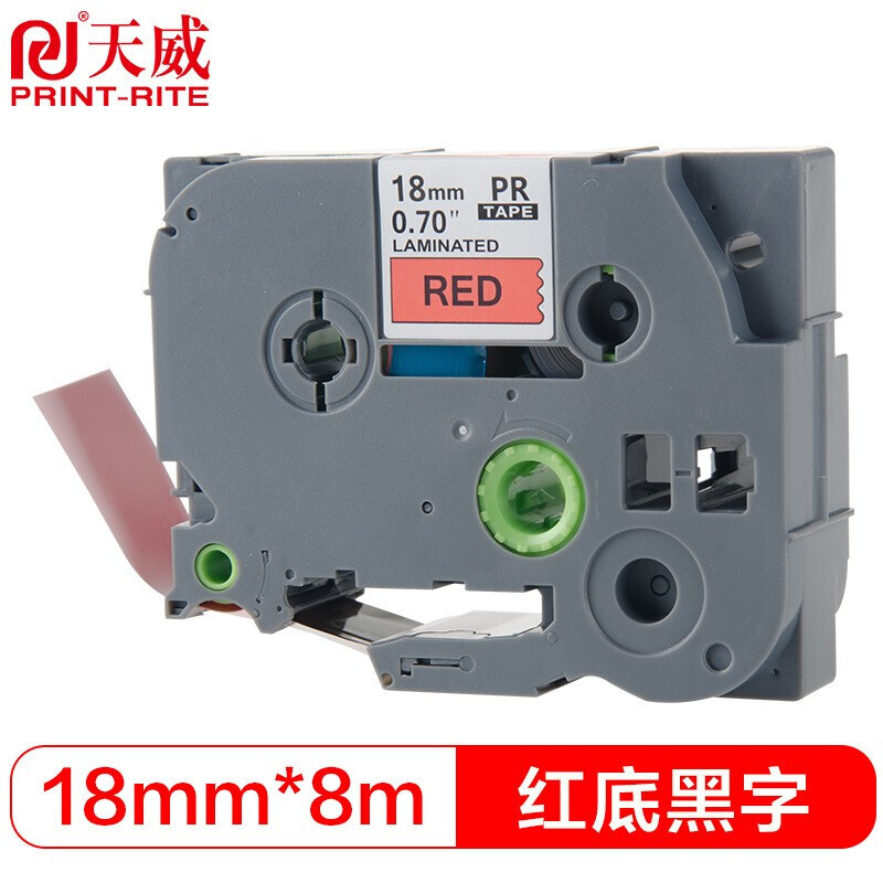 • 天威Tze-441 红底黑字 18mm标签带适用兄弟标签机色带不干胶标签纸