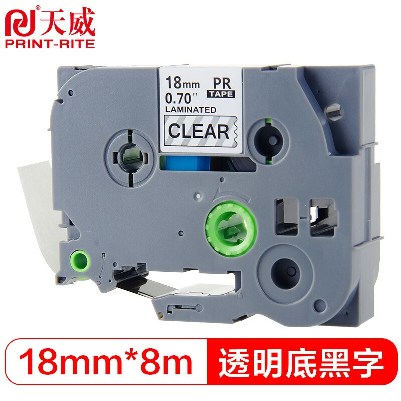 • 天威Tze-141 透明底黑字 18mm标签色带适用兄弟标签机色带不干胶标签纸