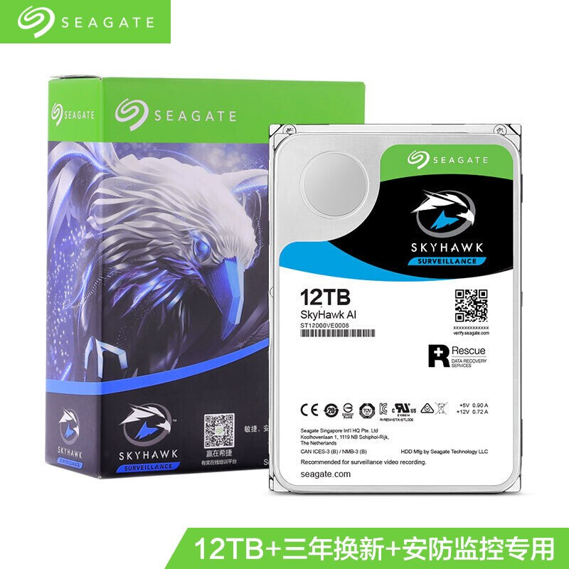 - 希捷(Seagate)监控硬盘12TB 64MB 5900转 SATA 垂直 机械 PMR CMR 希捷酷鹰SkyHawk ST12000VE0008