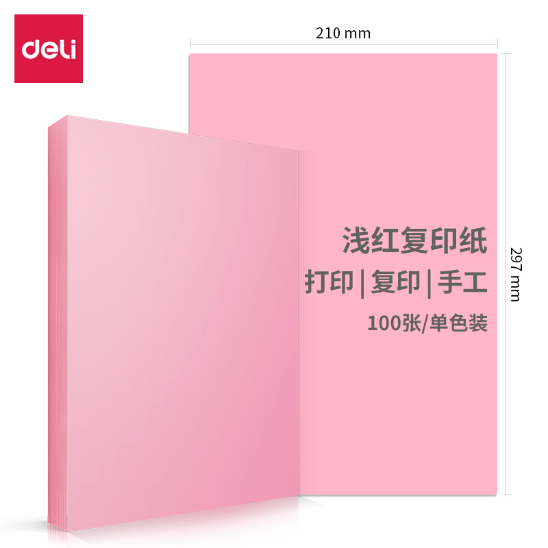 得力(deli)A4浅红色复印纸 彩色打印纸 儿童手工折纸彩纸 80g卡纸 100张/包 7757