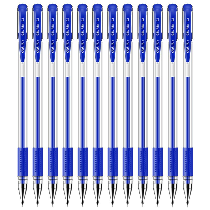 得力 学生0.5mm中性笔 水笔 办公签字笔 12支蓝色中性笔6600es