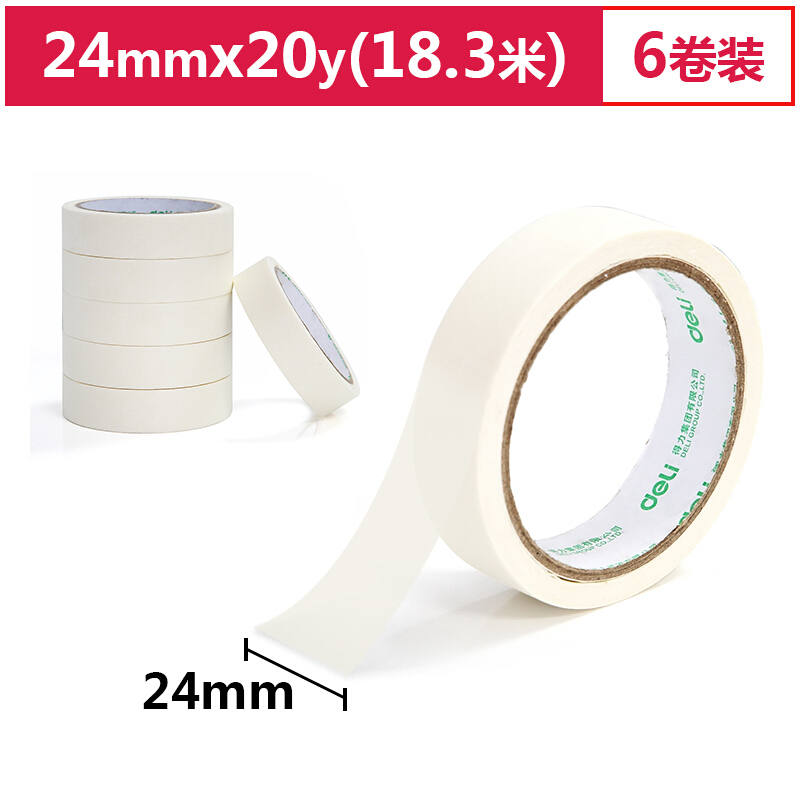 得力(deli)美纹纸胶带/装修遮蔽带/无痕纸/贴膜 24mm*20y*145um(18.3m/卷) 6卷袋装 办公用品 30670