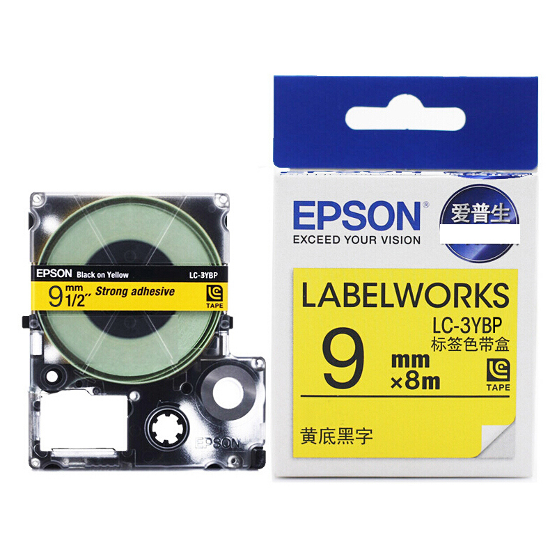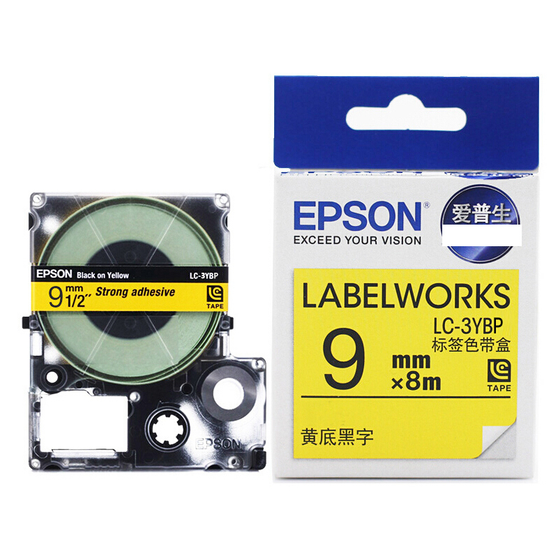 - 爱普生 LK-3YBP 标签机色带 9mm 黄底黑字 (LW-K400L/LW-600P/LW-700/LW-1000P/LW-Z700/LW-Z900)