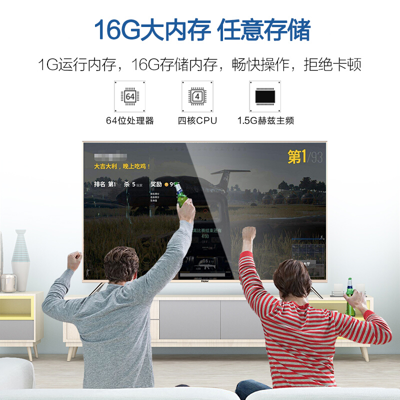 - 海尔 (Haier) LU55D31J 55英寸4K超高清 人工智能 语音遥控 超窄边框LED液晶电视16G大内存 (金色)