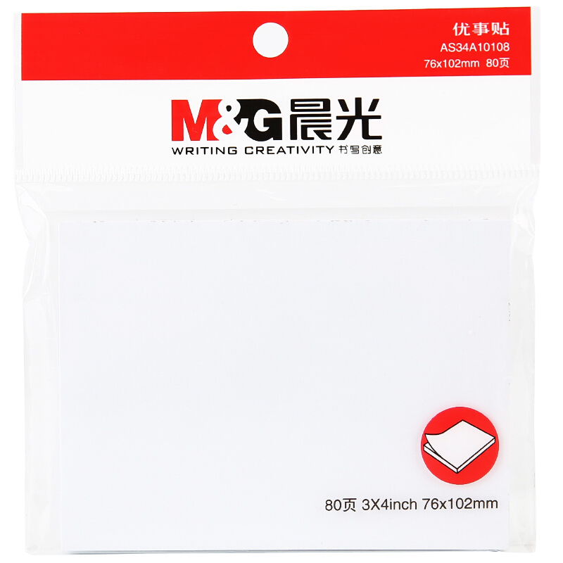 晨光YS-46 白色80页便利贴 粘性便签纸留言贴 76*102mm记事贴优事贴便签本子 单本装