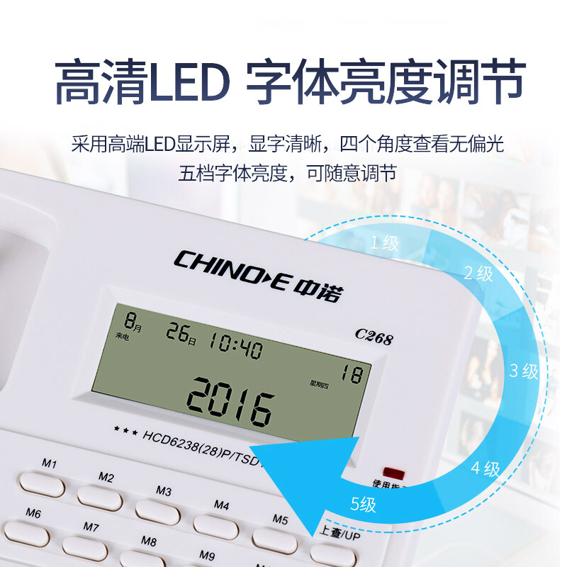 中诺C268 电话机 座机 固定 电话 有线 来电显示 一键拨号 免电池 双接口 白色