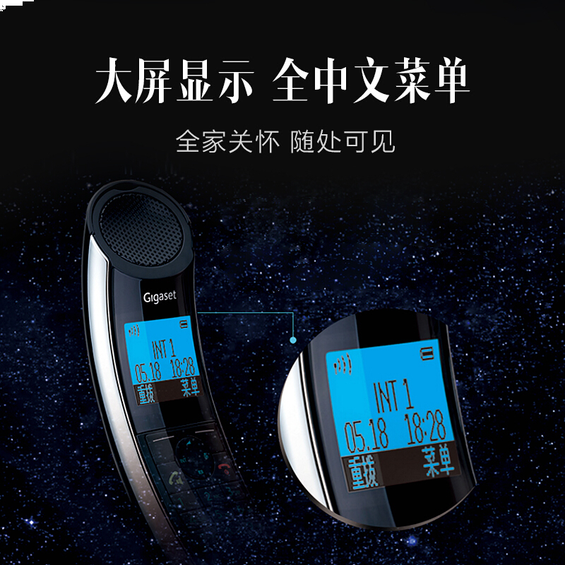 • 集怡嘉(Gigaset)原西门子 无绳电话机 无线座机 子母机 轻奢时尚艺术电话 中文菜单 E350套装一拖三(黑曜)
