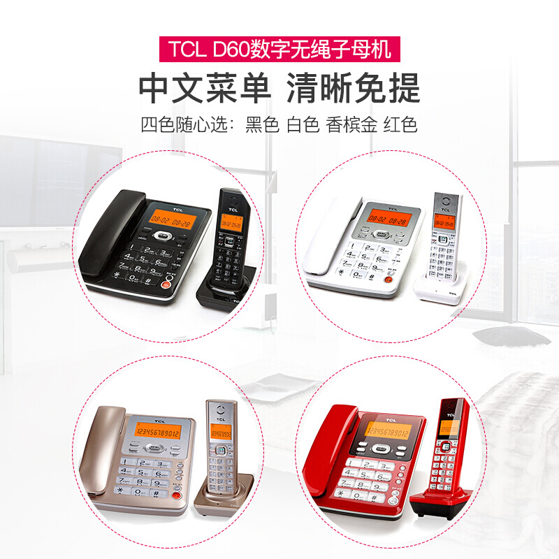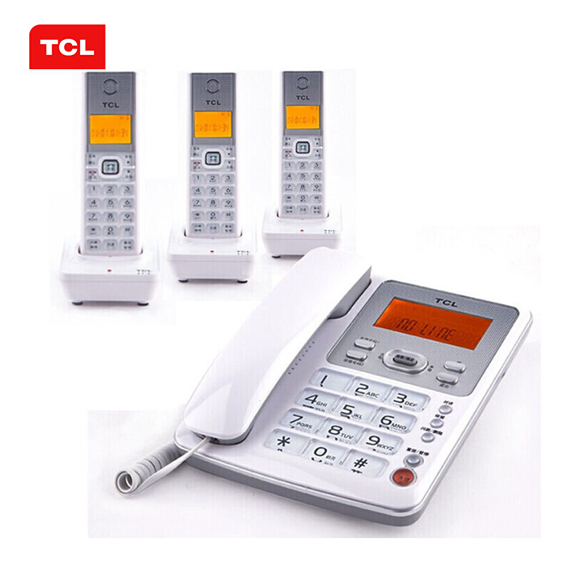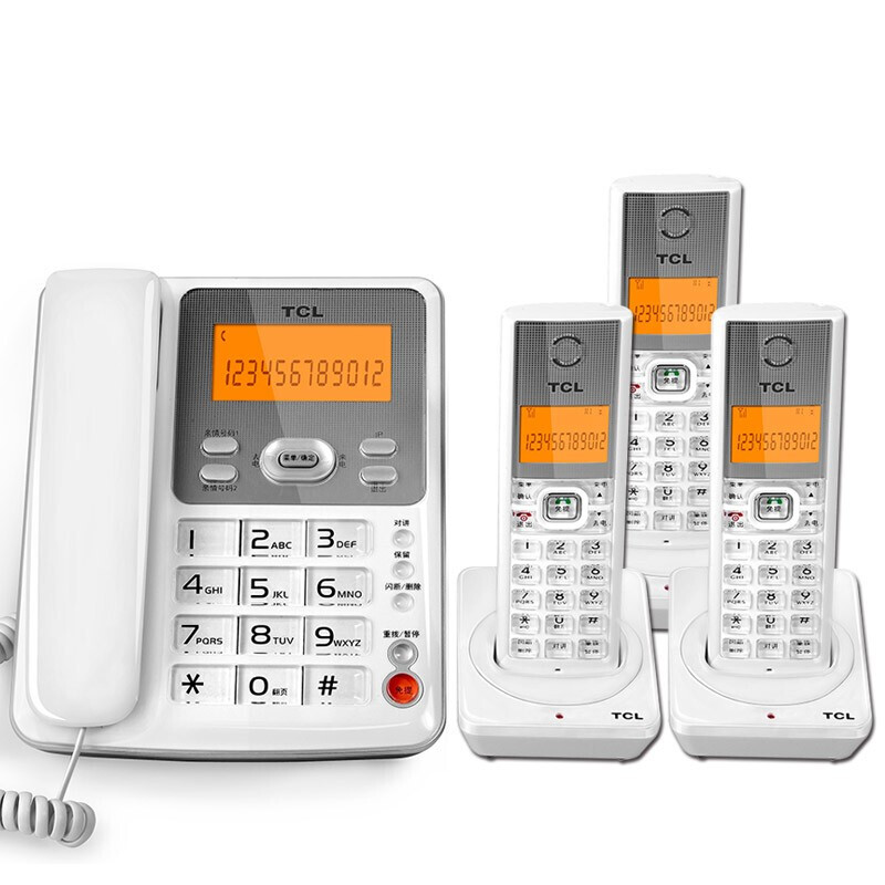 • TCL D60 无绳电话机 无线座机 子母机 办公家用 大按键 信号强 抗干扰 套装一拖三(白色)