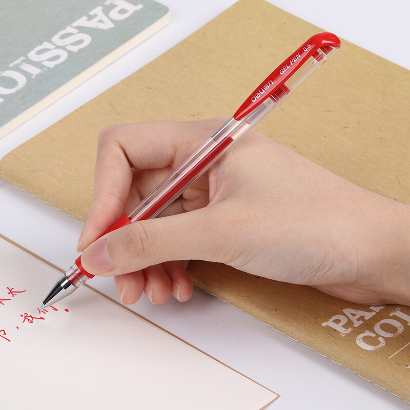 得力(deli)0.5mm经典办公中性笔签字笔 子弹头红色12支/盒